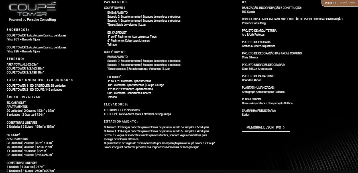 🏡 Morar na Barra nunca foi tão sofisticado! O Coupé Tower traz um novo conceito de alto padrão, com design assinado pela Porsche Consulting e localização estratégica a poucos minutos do Metrô Jardim Oceânico.