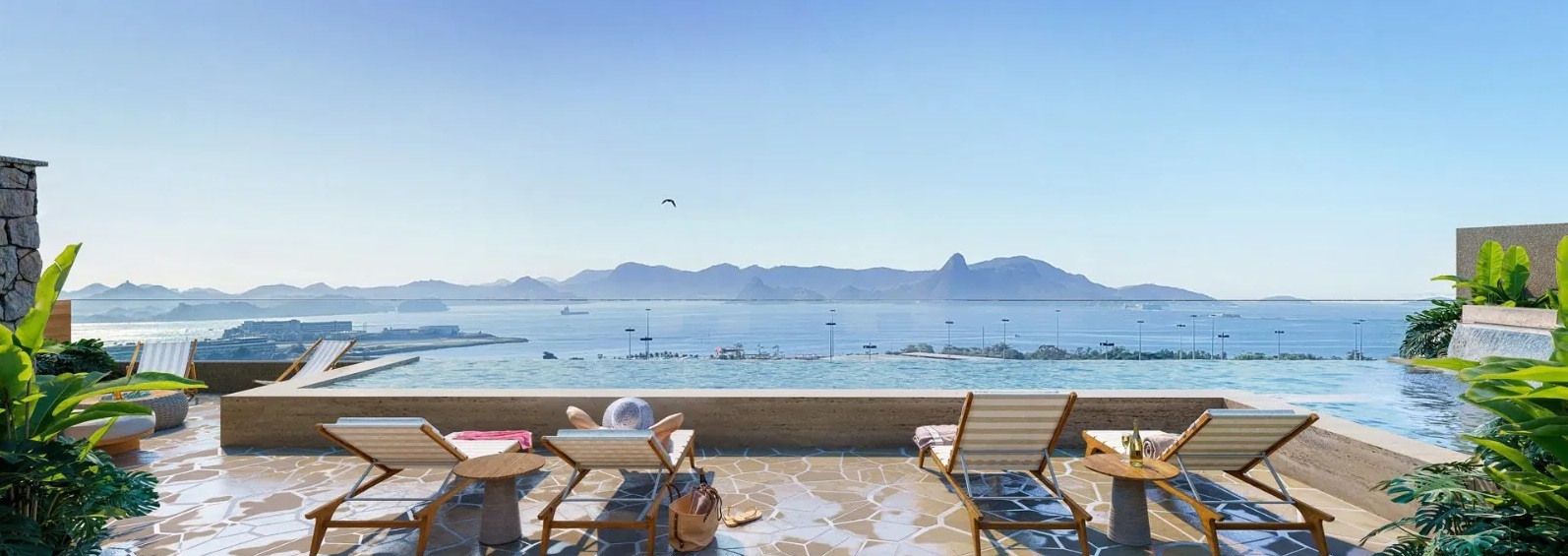 ✔ Rooftop exclusivo com lazer completo e vista deslumbrante para o Aterro do Flamengo e a Marina da Glória.